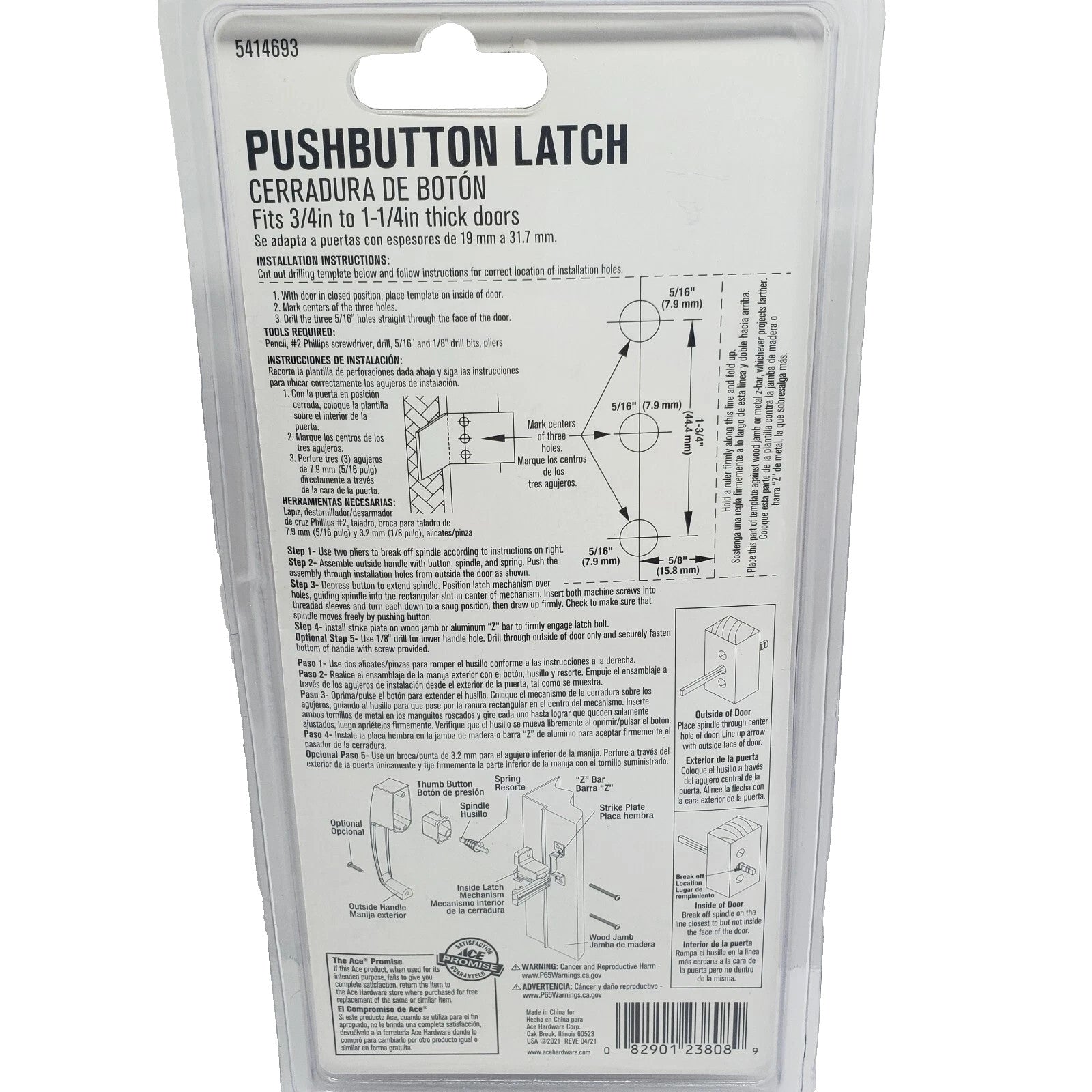 New in original factory package.ACE Pushbutton Latch Handle Set Screen/Storm Door Black #5414693.The ACE Pushbutton Latch Handle Set is designed for screen and storm doors, featuring a sleek black aluminum design. This set includes the latch handle, hardware, and is suitable for various types of doors. With the ACE brand known for quality and durability, this model (ACE 5414693) ensures a secure and stylish look for your home. Perfect for adding a touch of security and convenience to your entryway.