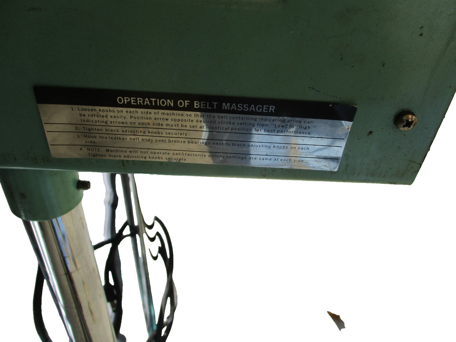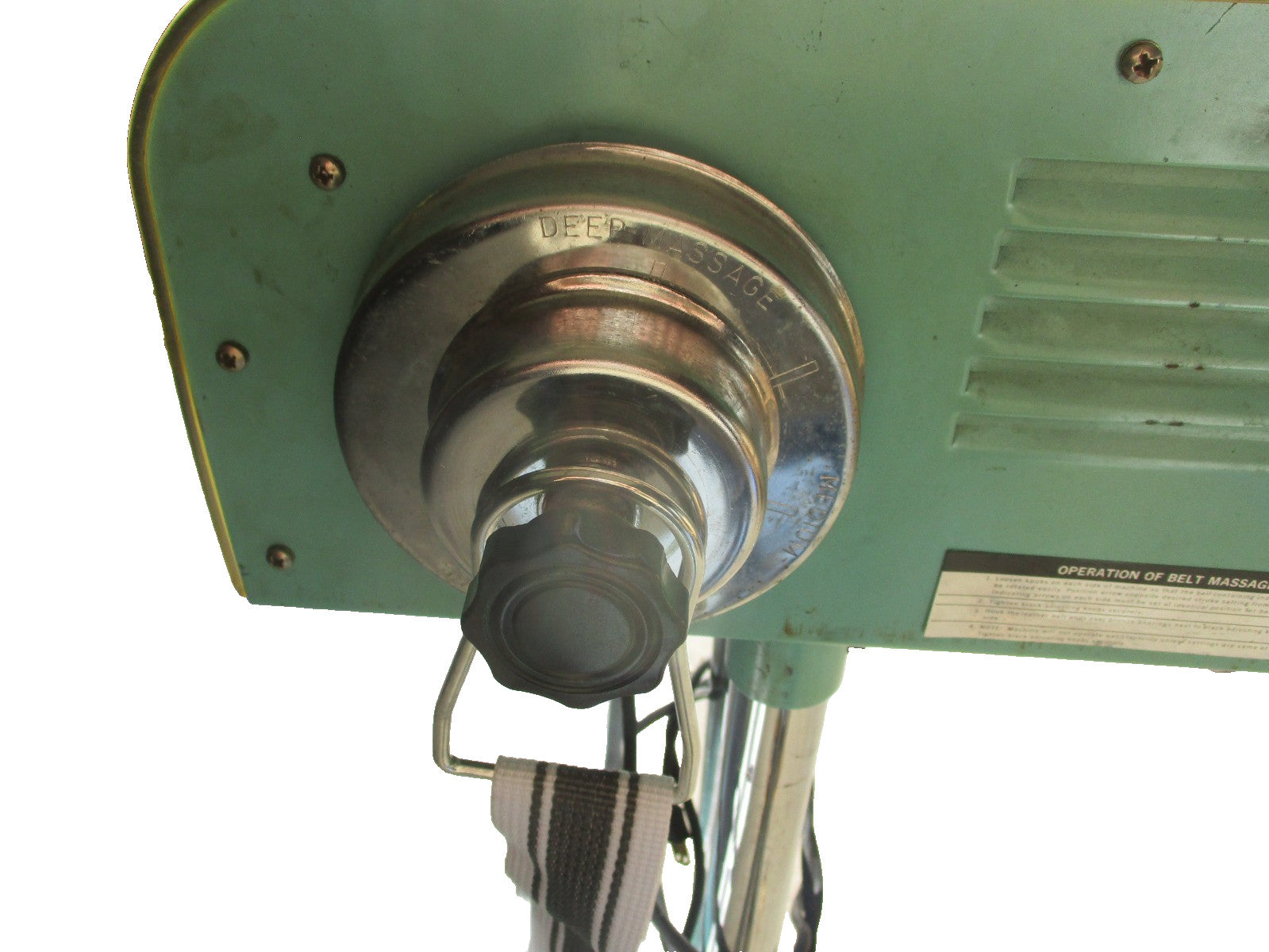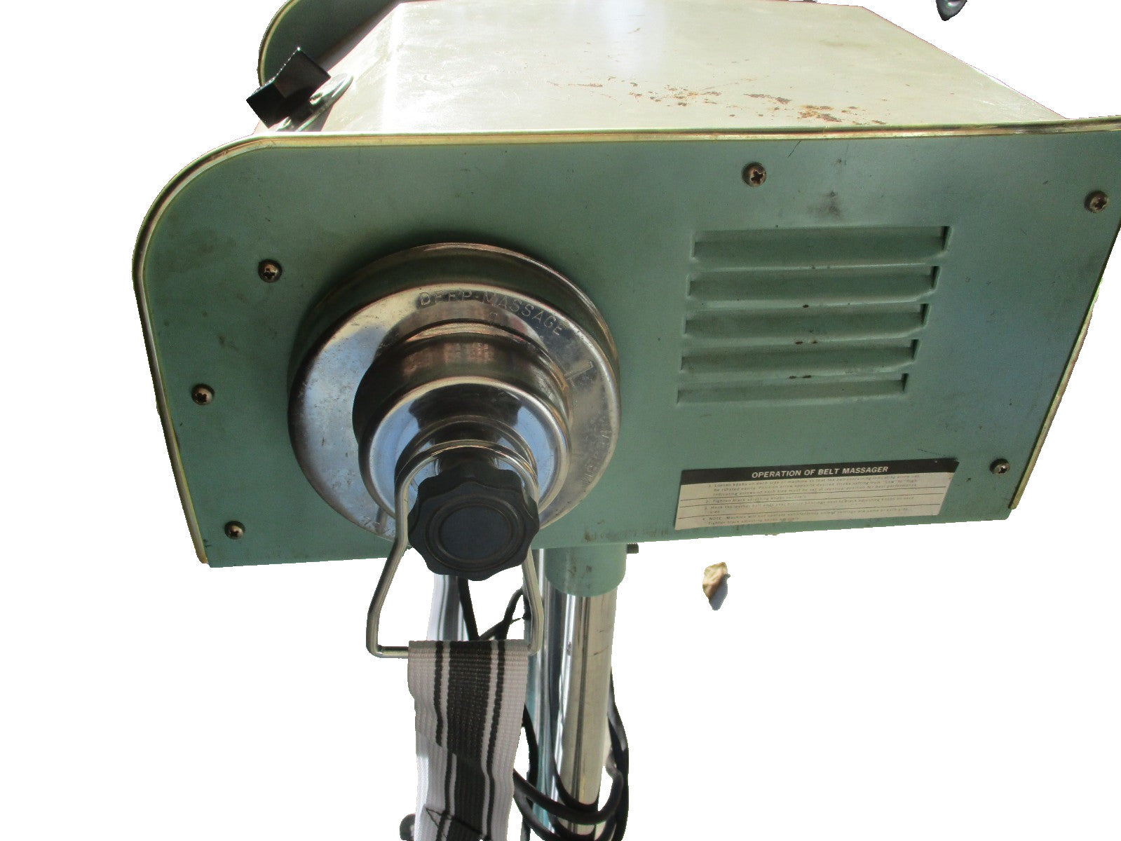Will look well used but tested and still works. Will need assembled when you receive it. Will come in only 4 pieces. Very easy to assemble.The Antique Vintage Vita Master Belt Massager Model Custom 300 is a unique piece of fitness equipment designed for home use, specifically targeting the back muscle group. Made of metal and in a vintage green color, this indoor massager was manufactured in the United States. With its gym and training sport/activity focus, this vintage massager offers a distinctive and historical touch to your fitness routine.This item comes with a brand new "Universal iron ring iron buckle massage belt vibration belt Universal" Replacement Belt