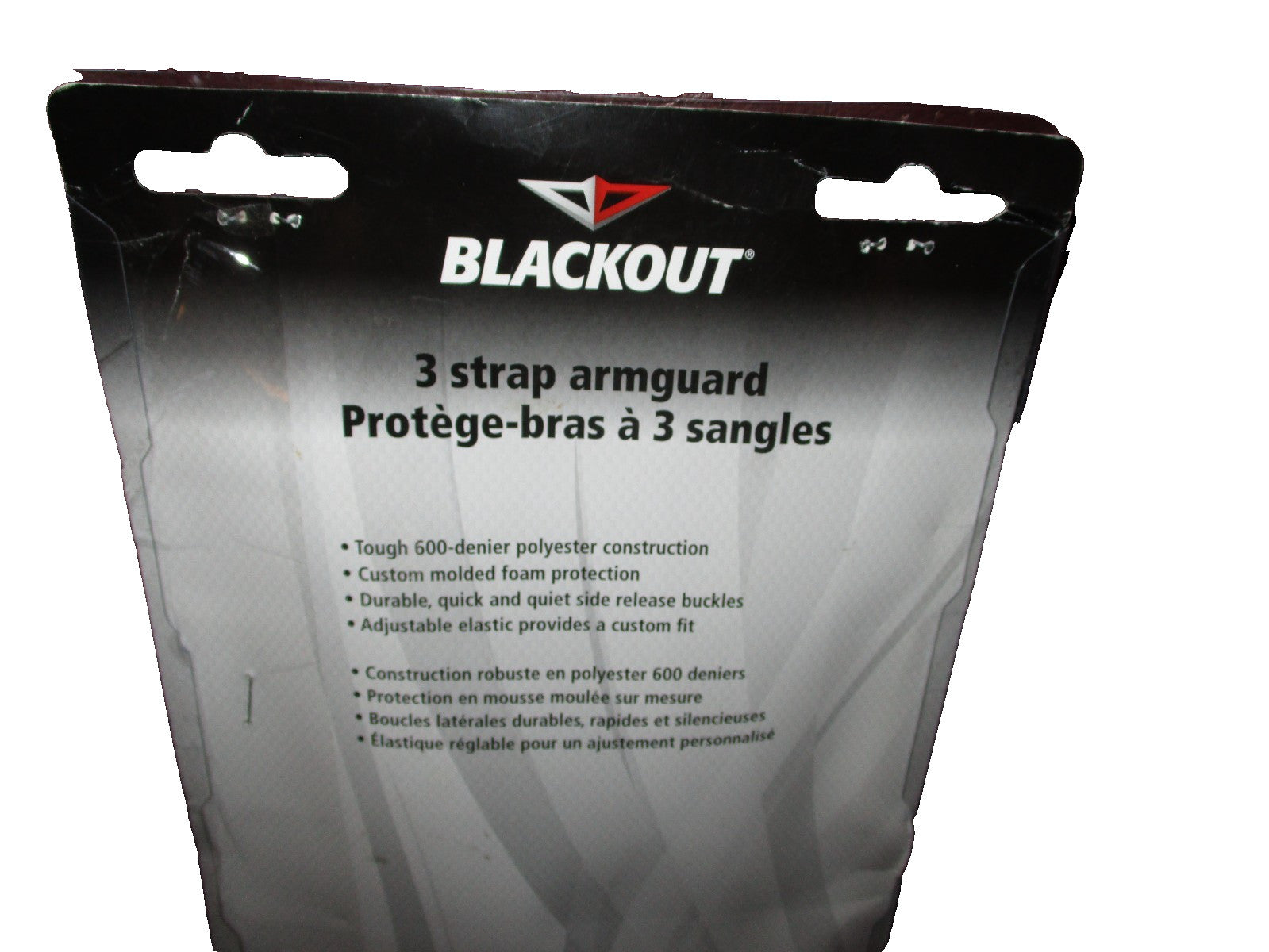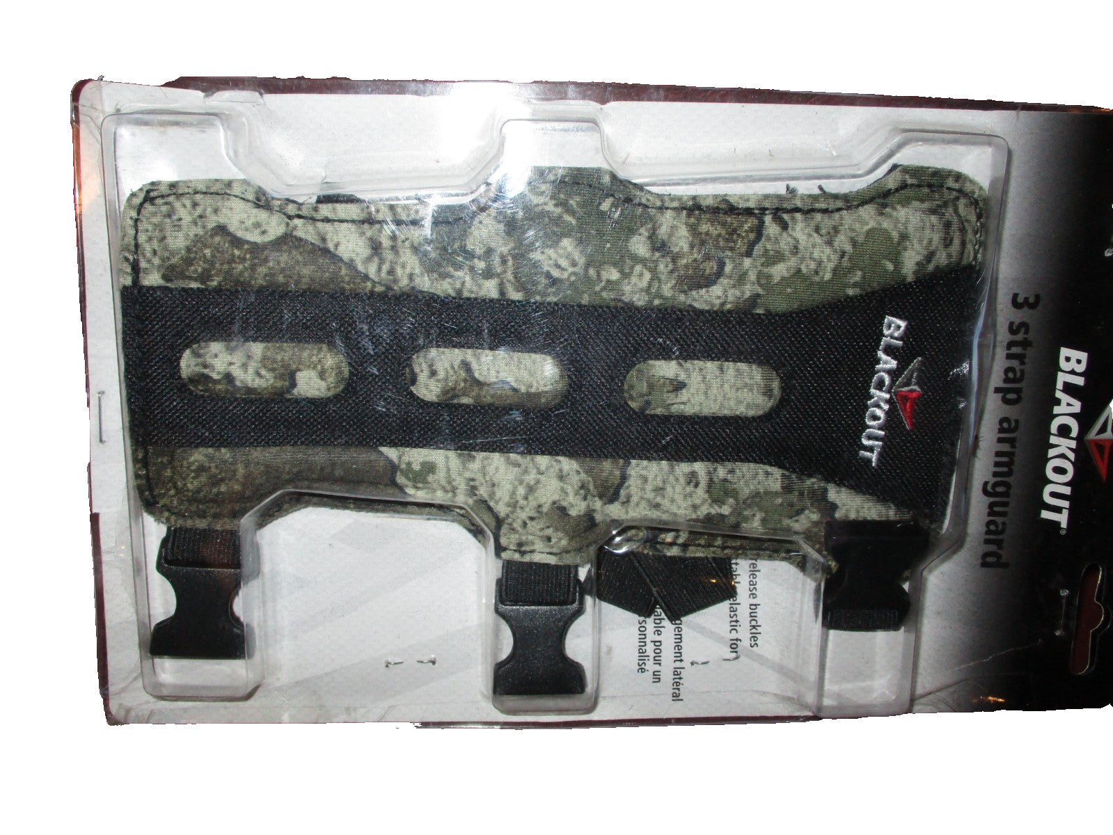 Open Package.New in original factory package.The defect because package was open but item was never used.Blackout 3 Strap Armguard 8" Long Flex Foam Camo.The Blackout 3 Strap Armguard is a durable and protective accessory designed for archery enthusiasts. With its 8" length and Flex Foam material, it provides ample coverage and cushioning for the arm during shooting. The Mossy Oak Camo design adds a stylish touch, while being suitable for both men and women. Made in the United States by Blackout, this armguard is a reliable choice for outdoor sports and sporting goods activities.