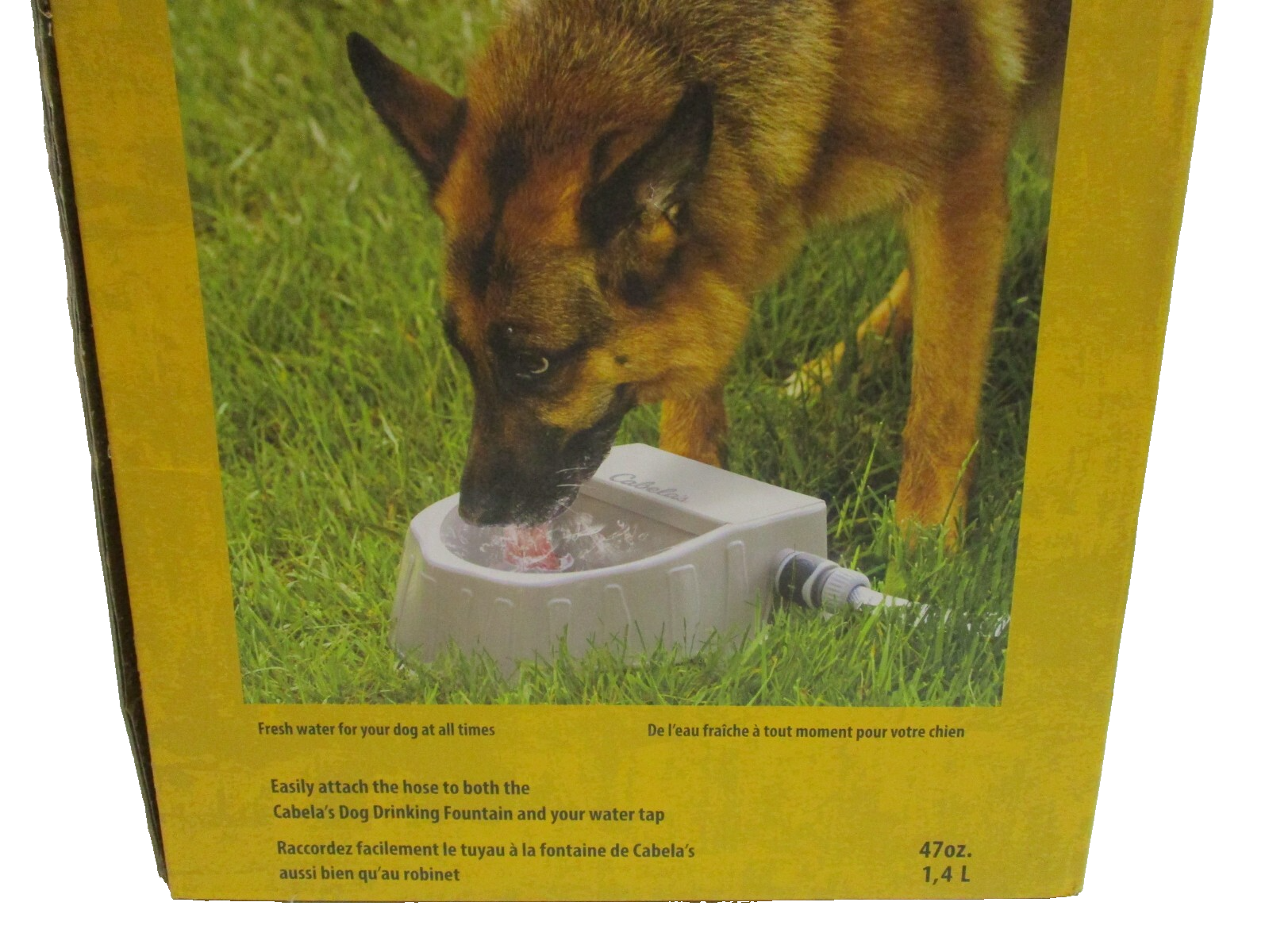 New in original factory box.The Cabela’s Outdoor Dog Drinking Fountain is a reliable solution for keeping your furry friend hydrated while they're outdoors. With the Cabela’s brand known for quality and durability, you can trust that this product will provide clean, fresh water for your dog to drink from during outdoor activities. This drinking fountain is designed to be easy to use and provide convenience for both you and your dog, making it a must-have for pet owners who enjoy spending time with their furry companions in the great outdoors.