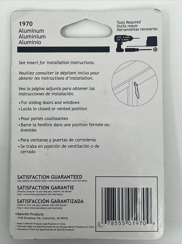 Factory sealed.The First Watch Security Steel Patio Door Pin in aluminum finish, model 1970, is a stylish and durable door jammer designed to add an extra layer of security to your home. With its sleek silver color and high-quality aluminum material, this product not only enhances the safety of your patio door but also adds a touch of elegance to your home decor. Manufactured in 1970, this model has stood the test of time and proven to be a reliable choice for homeowners looking to improve their home security.