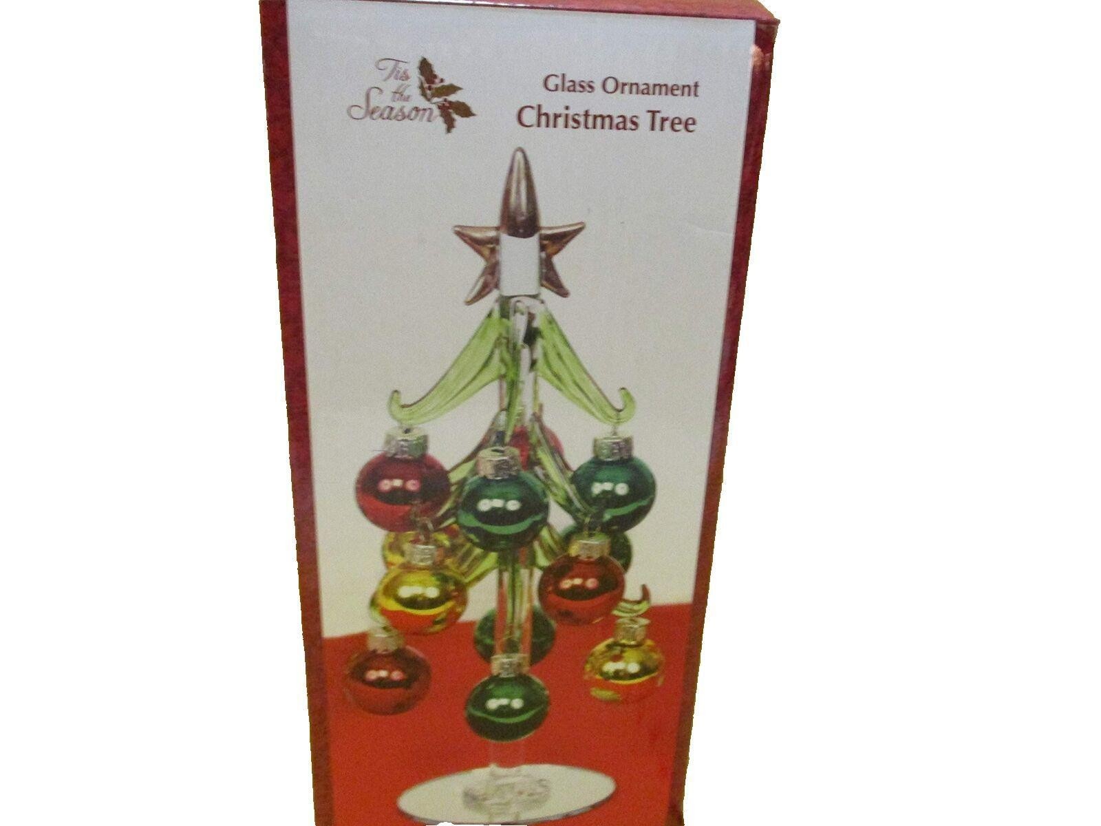 New in the original factory box.Holiday Tis The Season Christmas Tree All Glass Ornament 8".This 8" Holiday Tis The Season Christmas Tree All Glass Ornament is a beautifully crafted decoration perfect for the holiday season. Made of hand-blown glass, it features a festive red, blue, and gold color scheme, making it a charming addition to any Christmas tree. This artist-designed ornament stands out with its intricate design and decorative features, sure to bring a touch of holiday cheer to any home decor.