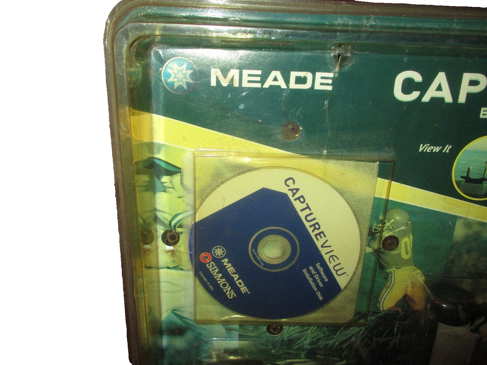 New old stock and in original factory package.Get close to the action with this combination binocular and digital camera by Meade and capture it digitally in photos or instant replay video. Perfect for sporting events, races or nature hikes, the built-in 640x480-resolution digital camera captures what you see in the 8-power view of the binoculars. The compact design is versatile and lightweight, and the easy to use digital camera features automatic exposure and focus-free settings. Capture up to 360 images or 3 minutes of instant replay video with the 16MB of memory, then download and edit the images on your PC with the supplied USB cable and software. Other features include a carrying case, neck strap and cleaning cloth. Imported. 3Hx3-1/2Wx4-1/4D".