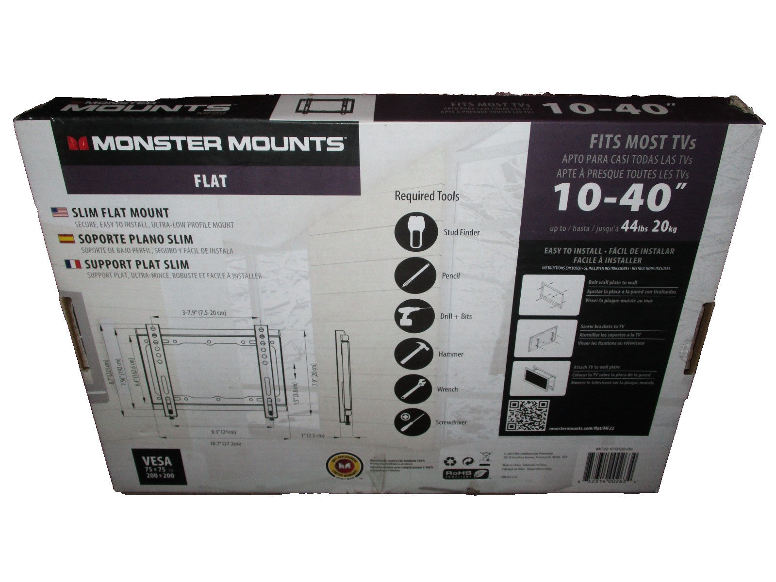 Monster Mounts Super Flat TV Wall Mount 10" – 40" TVs Monitors Ultra‑Slim