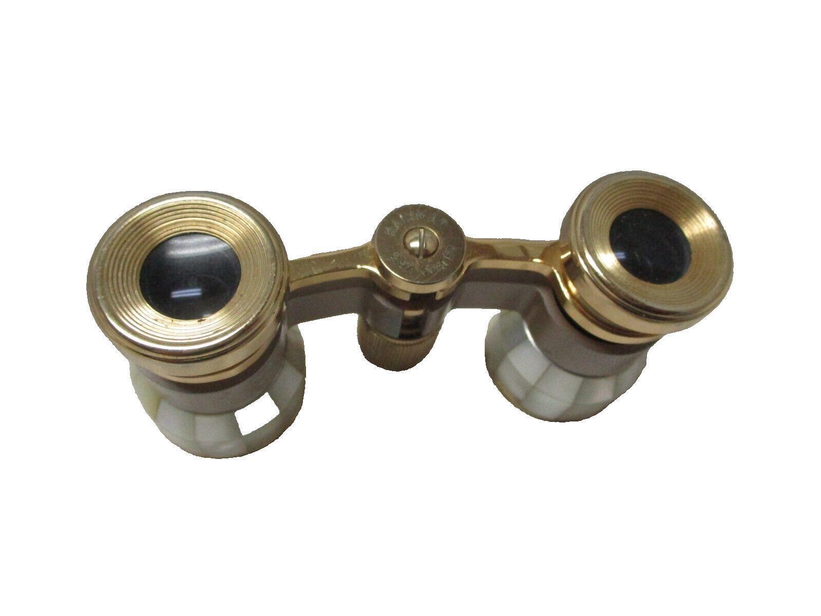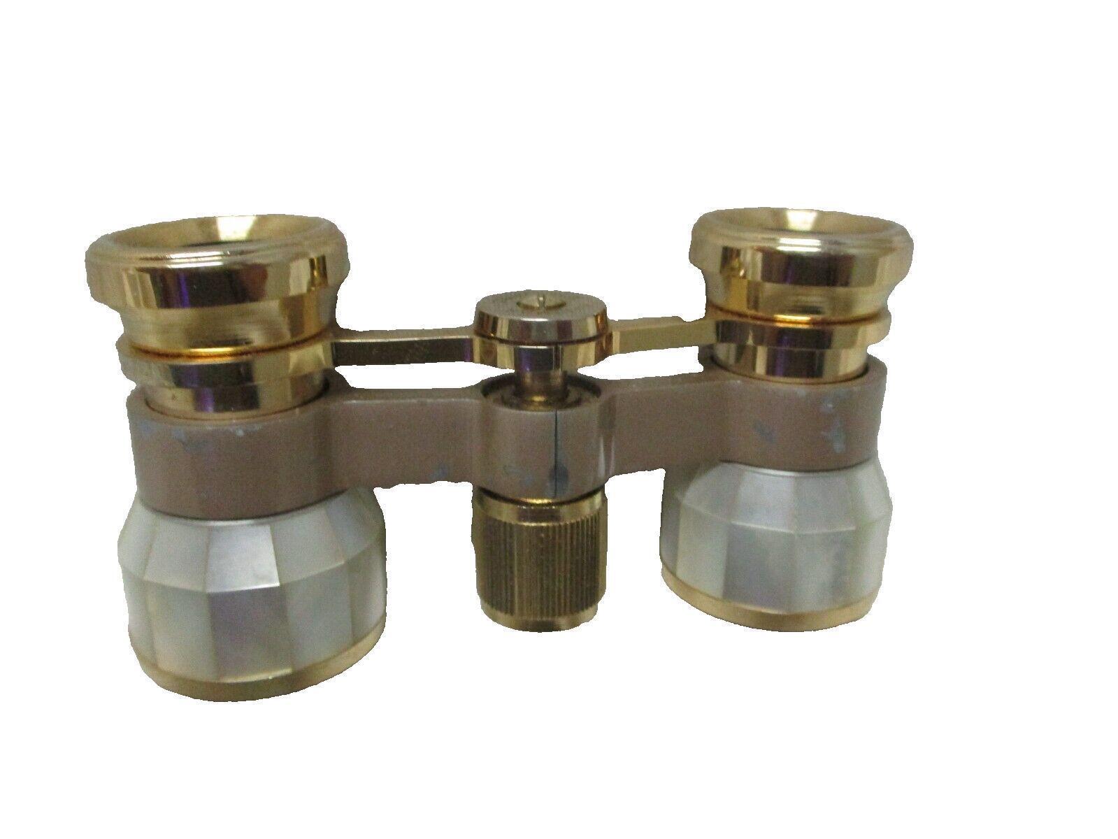 Will be in used condition. Opera Binoculars Kalimar 2.5X Coated Japan With Carrying Case. Comes with original carrying case. This item will have scratches and nicks on item. Both will look aged. Lenses look clear.Vintage Mother of Pearl Opera Kalimar Japan Binoculars.These elegant, mother of pearl mini Opera Binoculars is 1 7/8"high, length- 3 3/4", 2.5x magnification. Condition is pre-owned. Case has some small traces of time like changing a color. Small compact size. Fis perfectly in carrying bag. The Opera Binoculars Kalimar 2.5X Coated Japan with Carrying Case are compact and elegant binoculars specifically designed for opera glasses. With a maximum magnification of 2.5x and an objective lens diameter of 12mm, these binoculars provide clear and stable images while minimizing glare. The gold color and coated lenses add a touch of sophistication to the design. Made by Kalimar in Japan, these binoculars are lightweight at 7.9 oz and come with a convenient carrying case for easy transport and protection. Perfect for enhancing your viewing experience at the opera or theater.