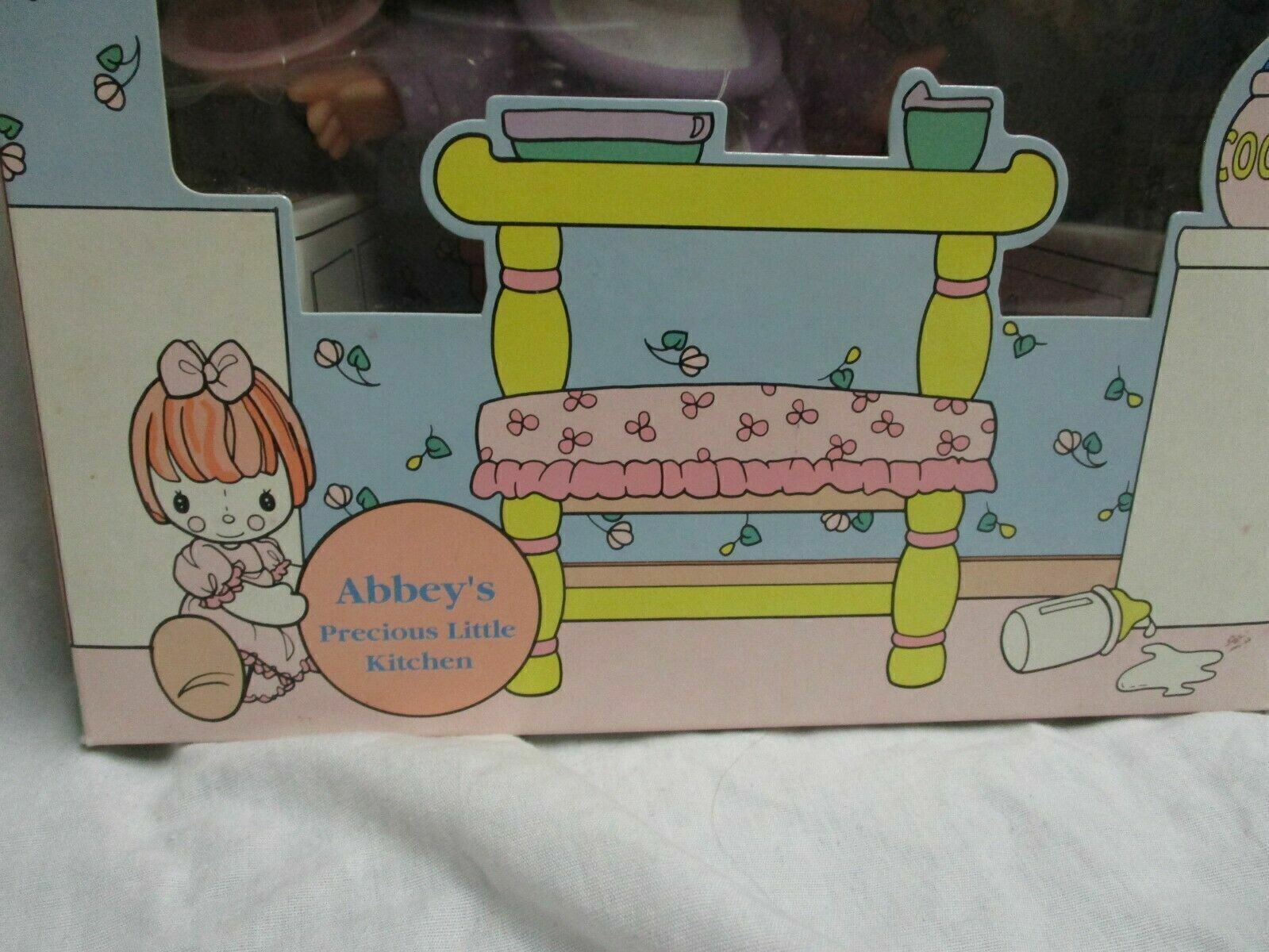 New in original factory box. NEW OLD STOCK.The Precious Moments Abbey's Precious Little Kitchen set is a vintage baby doll made of cloth, targeted to girl doll owners from the 1990s. With a brand known for its quality and charm, this new old stock item offers a unique and nostalgic addition to any doll collection. Perfect for those who appreciate the sentimental value of vintage toys and enjoy collecting rare finds from the past.