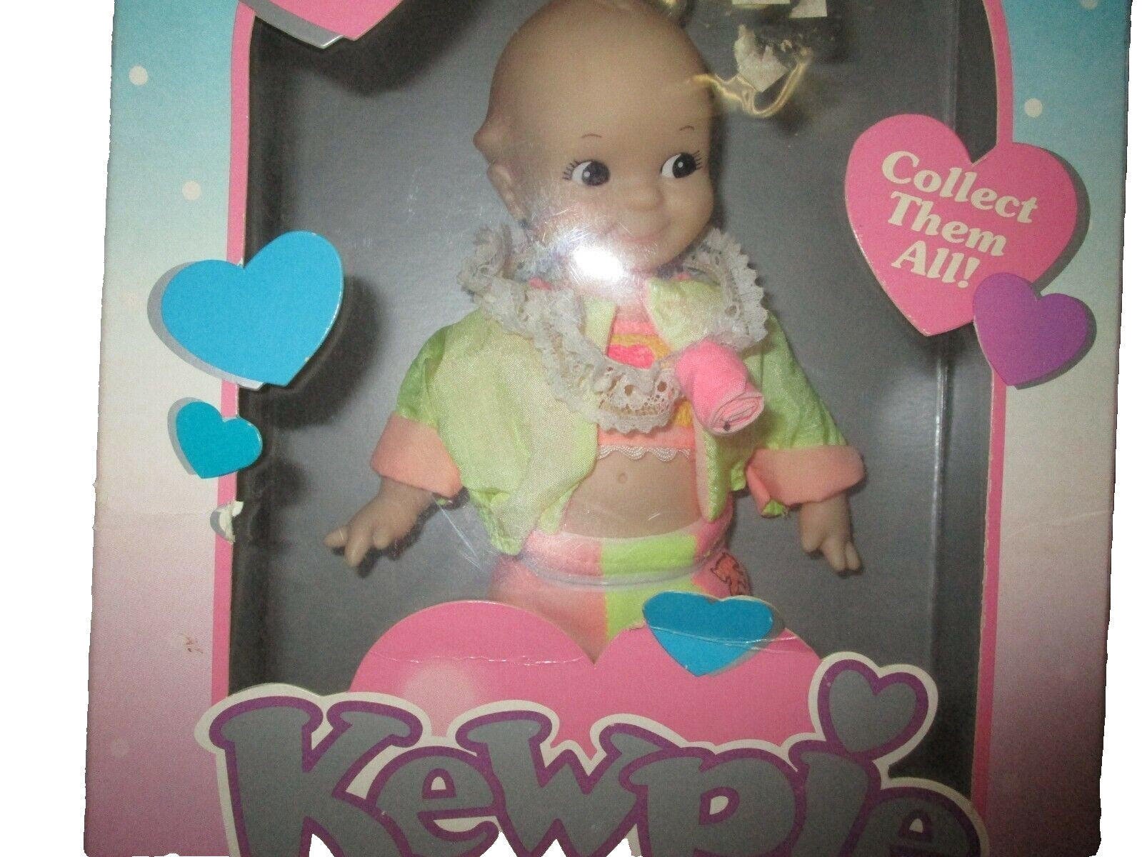 New old stock and in the original factory box but factory box will not be in very good shape but iterm inside the box will be in new comndition.Rose Art Vintage 1993 Secret Hearts Kewpie Baby Doll.The Rose Art Vintage 1993 Secret Hearts Kewpie Baby Doll is a collectible baby doll designed by artist Rose Pinkful. With blonde hair and made of vinyl, this girl doll from 1993 comes as a single piece, making it a charming addition to any doll collection. The Kewpie brand adds a nostalgic touch to this vintage doll, perfect for those who appreciate classic baby dolls with a cute and timeless theme.