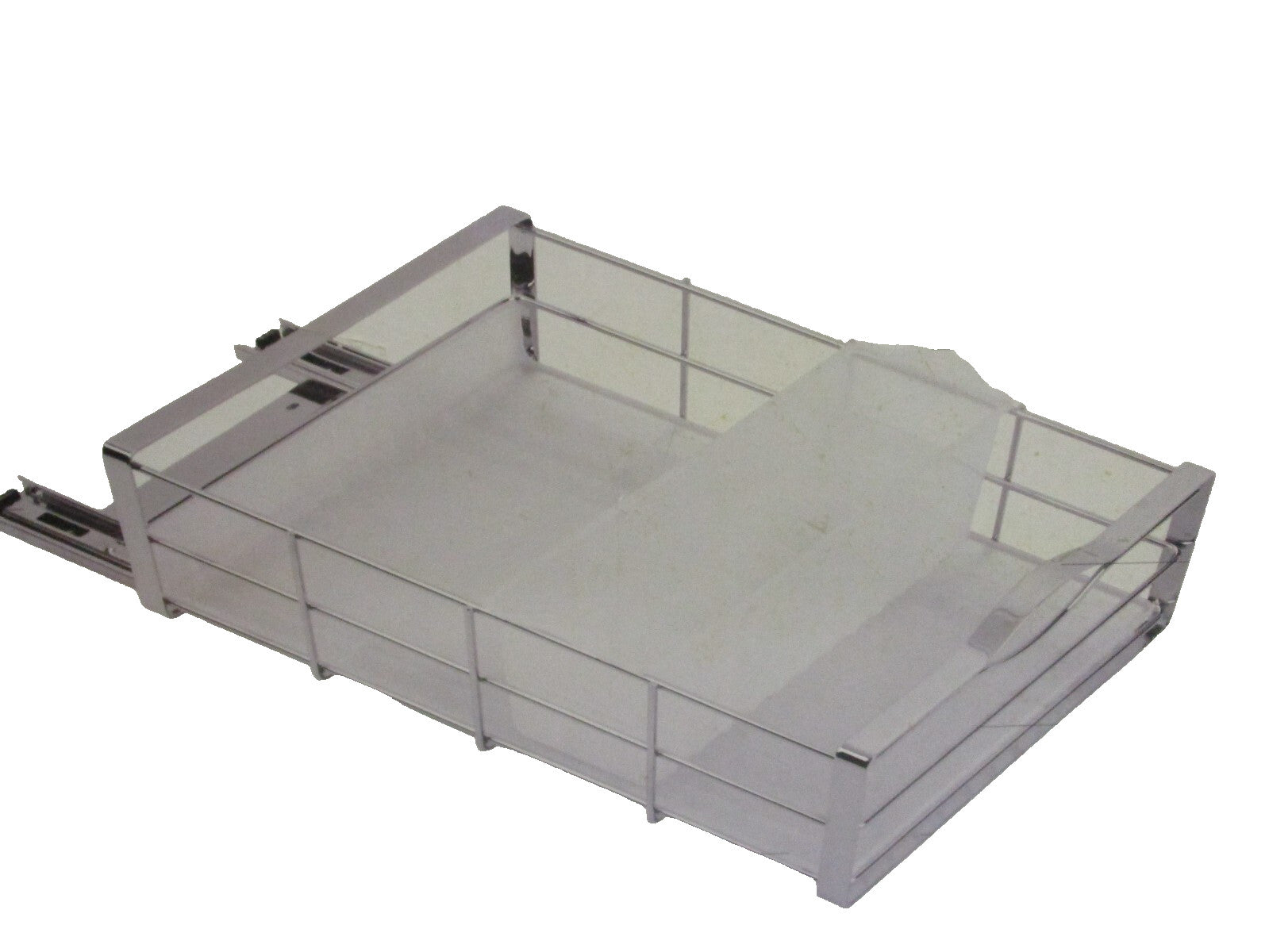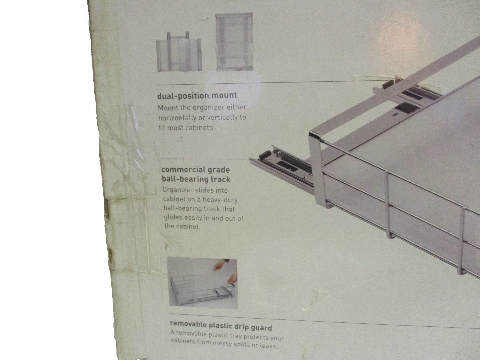 New in the original factory box.Simplehuman Chrome 14" Pull 0ut Cabinet Organizer Model KT-1048 Comercial Grade. .Measures:14"H x 20"L x 14"W.Factory box not in the best condition.The Simplehuman Chrome 14" Pull Out Cabinet Organizer Model KT-1048 is a commercial-grade slide-out shelf designed for household use. Made of chrome-plated steel, this 14-inch tall and 20-inch long organizer is perfect for organizing cabinets in the kitchen or bathroom. The simplehuman brand ensures quality and durability, making it a reliable choice for keeping your space tidy and efficient.