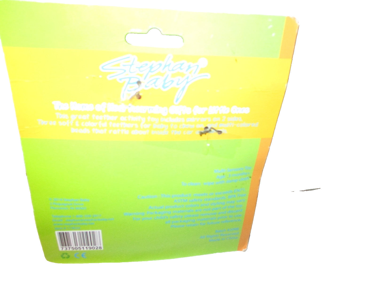 New in original factory package.Stephan Baby Vroom Vroom Car RattleTeether Acttivity Toy.The Stephan Baby Vroom Vroom Car Rattle Teether Activity Toy is a colorful teething toy designed specifically for babies aged 3 months and older. With a fun car rattle theme, this toy is perfect for engaging and entertaining little ones while also providing relief for teething. Made with durable materials, this teether is sure to withstand hours of playtime and provide comfort to your baby during the teething process.