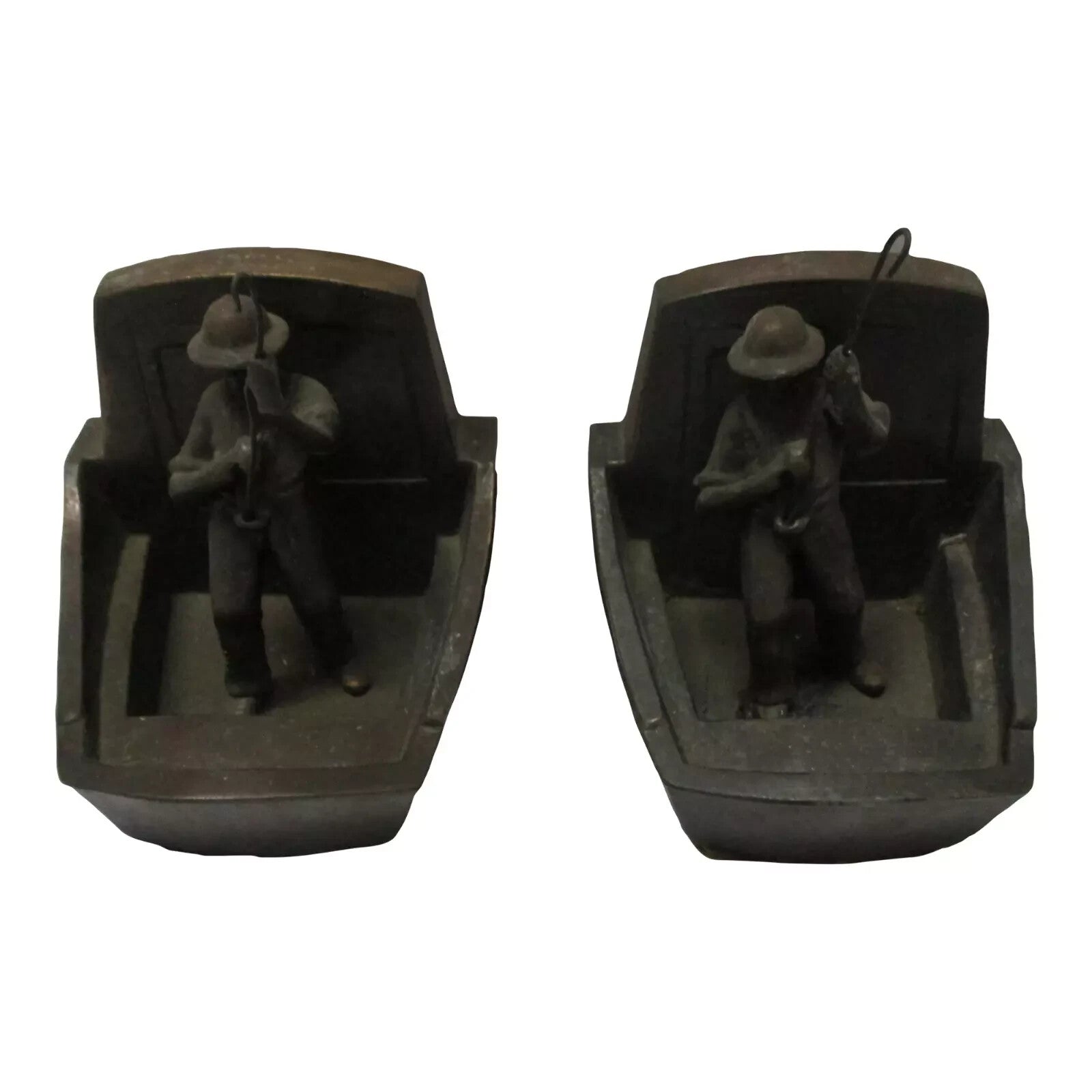 Vintage 1930's Mid-Century Sea Fisherman Solid Brass Bookends - Set of 2