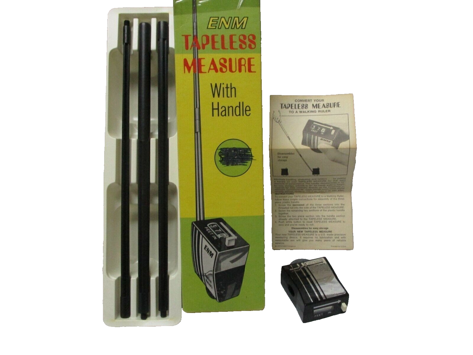 New old stock and in the original factory box.Vintage ENM Tapeless Measure Made in USA Measuring Wheel Tested Working.39.99The Vintage ENM Tapeless Measure is a unique and collectible tool made in the USA. This measuring wheel, brand Enm, is an antique original piece that has been tested and is in working condition. With its classic design and functionality, this tapeless measure is a must-have for any woodworking or carpentry enthusiast looking for a vintage tool with a touch of history. Made in the United States, this piece is a testament to quality craftsmanship and attention to detail.